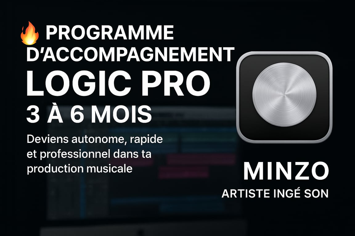PROGRAMME D'ACCOMPAGNEMENT LOGIC PRO (6 MOIS) Deviens autonome, rapide et professionnel dans ta production musicale sans perdre des années à tâtonner. Maîtrise Logic Pro en un temps record grâce un accompagnement personnalisé (En présentiel ou en Visio). Tu veux enregistrer, mixer et produire comme un pro ? En 6 mois tu passes du niveau débutant à un niveau autonome, rapide et confiant. Résultat garanti : tu sauras sortir tes propres sons, proprement, sans dépendre de personne. 💡À qui s’adresse ce programme ? Ce programme est fait pour toi si : ✔️ Tu veux commencer la musique mais Logic Pro te paraît compliqué ✔️ Tu perds du temps sur YouTube sans vrai plan de progression ✔️ Tu veux un expert qui te guide pas à pas ✔️ Tu veux apprendre les bases PRO : enregistrement / mixage / structure / workflow ✔️ Tu veux monter en niveau très rapidement ✔️ Tu veux développer ton identité sonore et tes automatismes Ce que tu vas apprendre (programme détaillé) 🔥 1. Mise en place & bases solides • Installation correcte et optimisation de Logic Pro • Organisation pro des pistes, bus, templates • Comprendre l’audio, les niveaux, le gain etc.. 🎙 2. Enregistrement propre (voix & instruments) • Paramétrage des micros & interfaces • Prise de voix claire et nette • Élimination des bruits, souffle, saturation 🎚 3. Mixage professionnel • EQ, compression, reverb, delay • Nettoyage, équilibrage, clarté • Travail sur la voix (effets modernes) • Mixage complet d’un morceau de A à Z 🎹 4. Production / arrangements • Construire un beat cohérent • Structure pro (intro / couplet / pré-refrain / refrain) • Optimiser ta créativité et ton workflow 🚀 5. Sortie & autonomie • Export propre • Gestion du volume & LUFS • Préparer tes sons pour les plateformes (Spotify, Apple Music) 👉 À la fin : tu sauras produire et mixer seul, professionnellement. Comment se déroule l’accompagnement ? ✔ 2- 3 séances personnalisées chaque semaine (Visio ou en studio) On travaille ensemble sur ton niveau et ton évolution. ✔ Accès à mes templates professionnels. Templates d’enregistrement et de mixage utilisés en studio (valeur premium). ✔ Suivi privé sur WhatsApp Tu m’envoies tes projets, je te corrige, je t’aiguille, je t’aide en direct. ✔ Exercices hebdomadaires + retours détaillés Pour progresser vite et proprement. ✔ Support illimité Tu n’es jamais seul. Je suis là du début à la fin. Pourquoi me faire confiance ? Je suis Minzo, Artiste - Ingé son avec plusieurs années d’expérience. J’ai accompagné des artistes, créateurs et débutants qui aujourd’hui sortent leurs propres sons. Je crée des templates pros utilisés par ma communauté. Je maîtrise Logic Pro depuis des années, avec une pédagogie simple et efficace. Mon objectif : te rendre autonome (pas te garder dépendant) Et surtout : Je t’apprends EXACTEMENT comme je travaille moi-même en studio. Résultats que tu vas obtenir au terme de l'accompagnement (100% satisfait ou rembousé) ✔ Tu maîtriseras Logic Pro de A à Z ✔ Tu produiras tes propres sons sans stresser ✔ Tu auras un workflow propre, rapide et efficace ✔ Tu sauras enregistrer n’importe qui ✔ Tu sauras mixer n’importe quel son ✔ Tu auras une identité musicale plus forte ✔ Et surtout : tu ne perdras plus de temps. Formule : 6 mois 🔥 FORMULE 6 MOIS (999€) — Transformation complète • Séances hebdomadaires • Suivi WhatsApp premium • Templates + presets bonus • Mix 100% guidé d’un de tes sons • Corrections approfondies chaque semaine ➡️ Idéal pour atteindre un vrai niveau professionnel Prêt à commencer ? Réserve ta session gratuite de 15 minutes ici : Je t’écoute, j’évalue ton niveau et je t’explique ton plan de progression personnalisé.